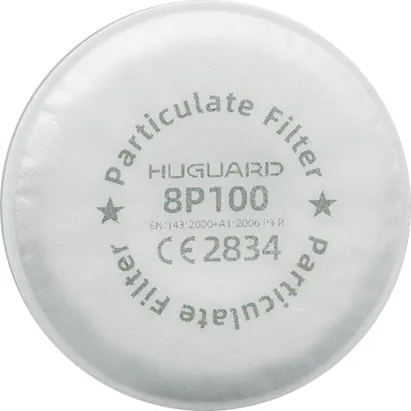 فلاتر HUGUARD 8P100-OV توفر أعلى مستوى من الحماية P3 ضد الجسيمات الصلبة والسائلة، مع تخفيف روائح الأبخرة العضوية المزعجة. تصميم حاصِل على براءة اختراع بشبكة مدمجة مفتوحة يزيد من التقاط الجسيمات ويحافظ على مقاومة تنفس منخفضة. مثالية لبيئات الدهان والكيماويات والمختبرات الخطرة.