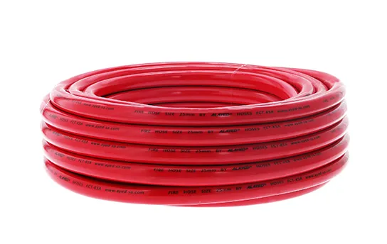 خرطوم حريق عالي الجودة: مصنوع من مركب PVC مع تعزيز بخيوط بوليستر عالية المتانة، يتحمل ضغوط عمل تصل إلى 20 بار.